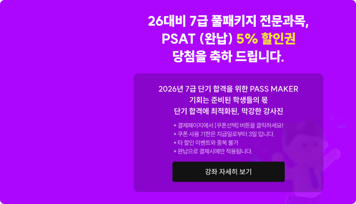 새로운 강사진, 새로운 커리큘럼으로 26년 7급 단기합격!